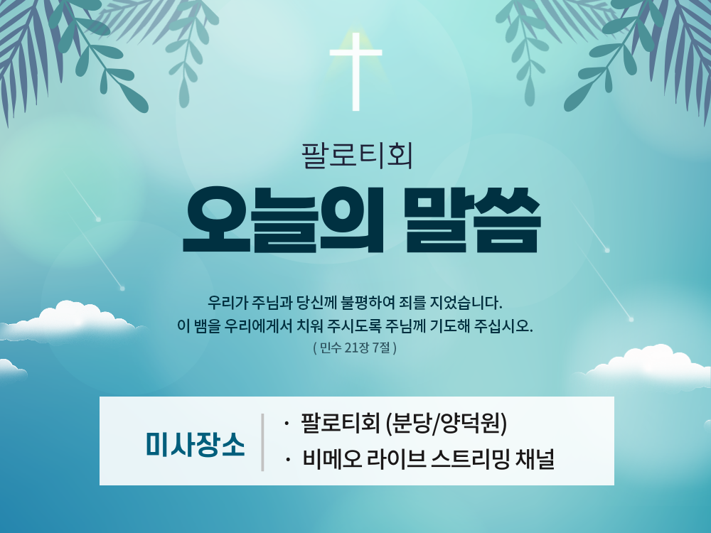 | 팔로티회 미사 2021년 3월 21일 (일) 시편 51장 15절 (0) | 2021.03.21 |
