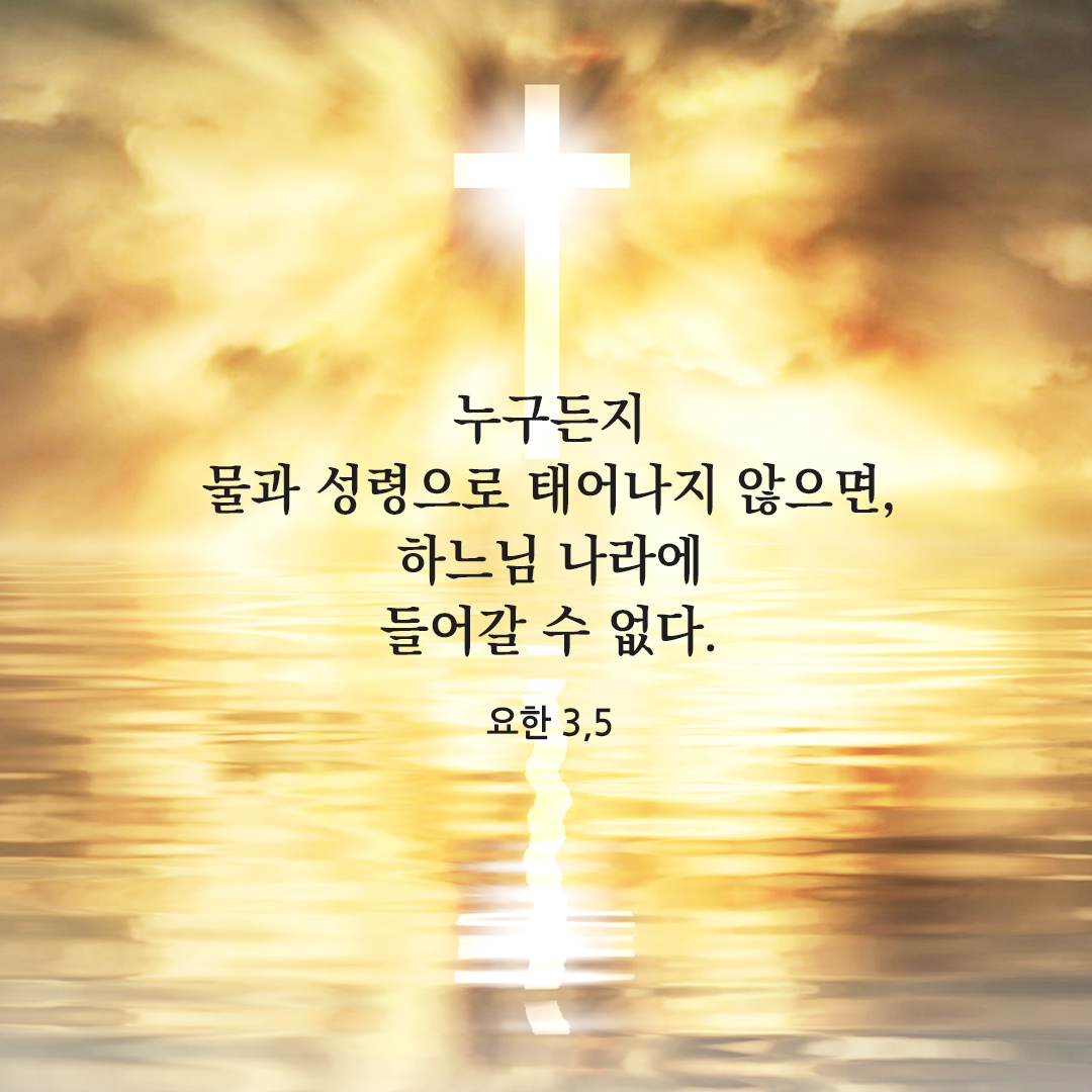 누구든지 물과 성령으로 태어나지 않으면, 하느님 나라에 들어갈 수 없다. (요한 3,5)