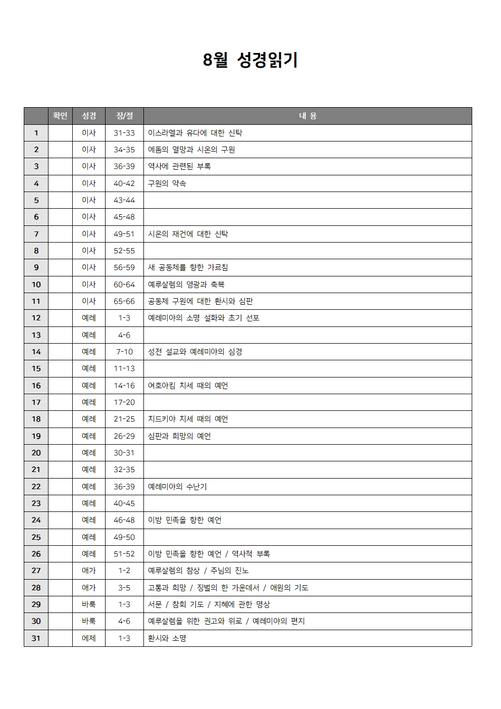 8월 성경읽기표
