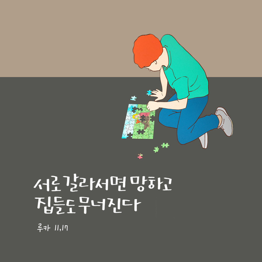 예수님께서는 그들의 생각을 아시고 이렇게 말씀하셨다. “어느 나라든지 서로 갈라서면 망하고 집들도 무너진다.