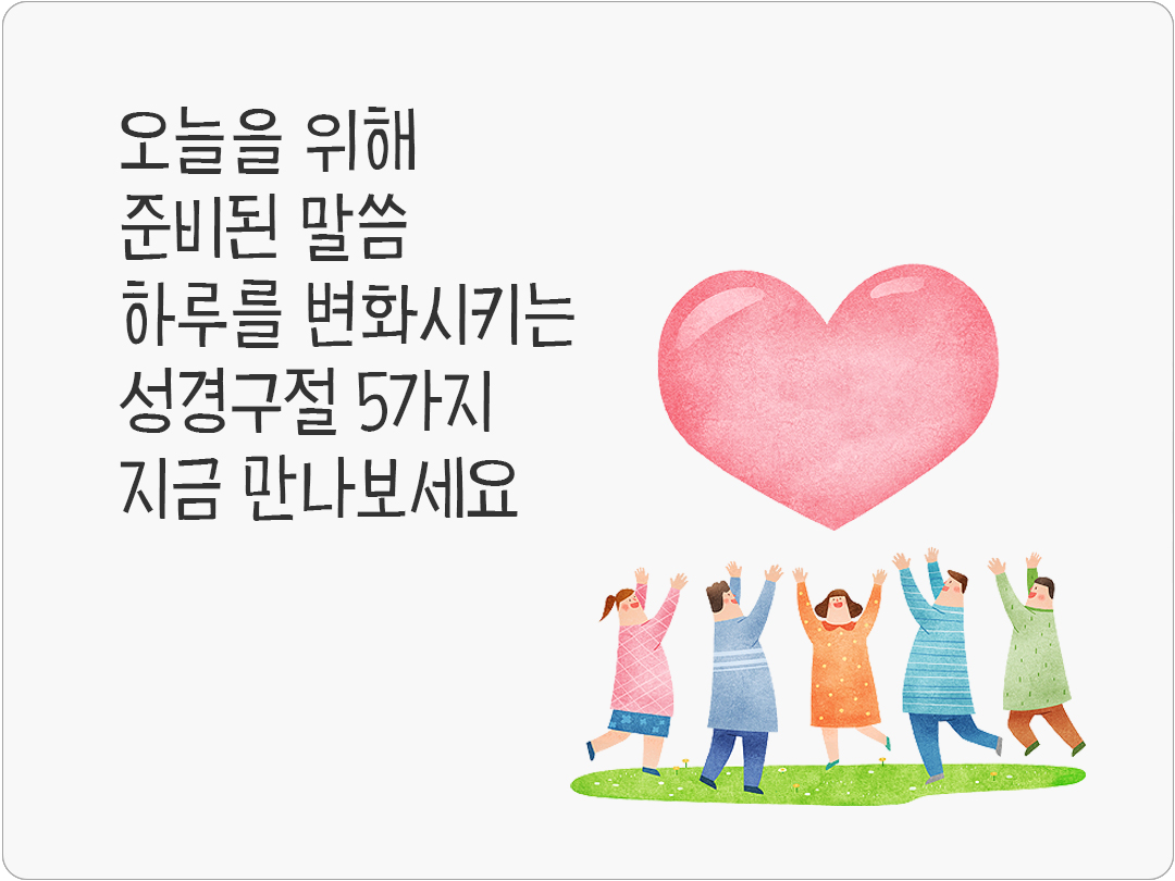 성경 말씀은 단순한 문장이 아니라 삶을 비추는 빛이 되어 하루를 변화시키는 힘이 있어요. 말씀 한 구절이 오늘을 새롭게 하고 큰 기적을 이끌어냅니다. 하루를 변화시키는 성경구절 5가지, 지금 만나보세요! 한 말씀이 오늘을 바꾸는 기적이 되기를 빕니다.