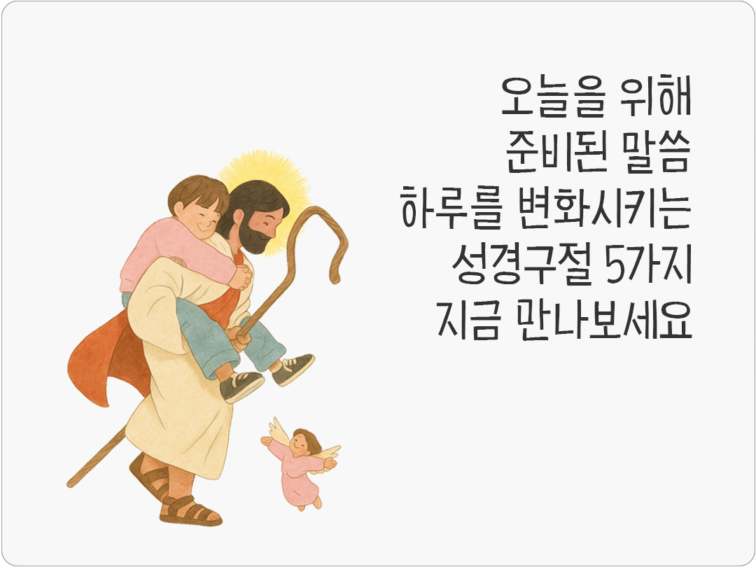 성경 말씀은 단순한 문장이 아니라 삶을 비추는 빛이 되어 하루를 변화시키는 힘이 있어요. 말씀 한 구절이 오늘을 새롭게 하고 큰 기적을 이끌어냅니다. 하루를 변화시키는 성경구절 5가지, 지금 만나보세요! 한 말씀이 오늘을 바꾸는 기적이 되기를 빕니다.