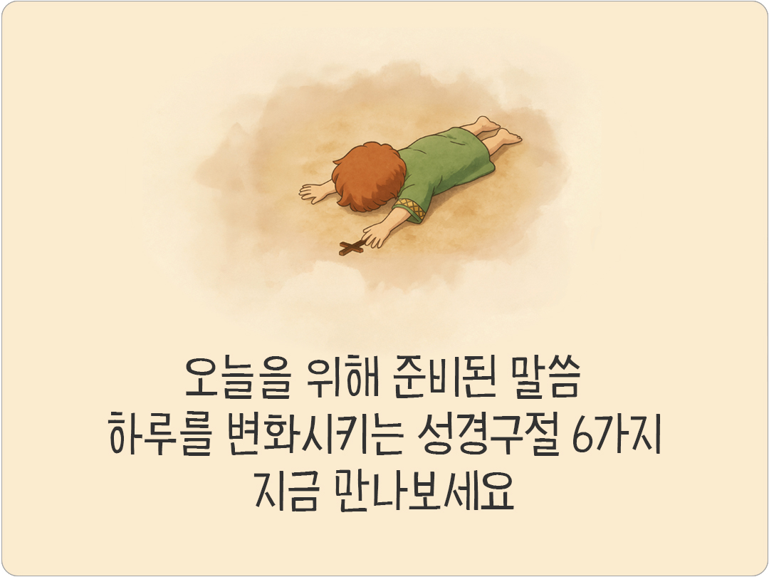 성경 말씀은 단순한 문장이 아니라 삶을 비추는 빛이 되어 하루를 변화시키는 힘이 있어요. 말씀 한 구절이 오늘을 새롭게 하고 큰 기적을 이끌어냅니다. 오늘을 위해 준비된 말씀, 하루를 변화시키는 성경구절 6가지 지금 만나보세요! 한 폭의 그림처럼 그려진 6가지 말씀이 평화가 되기를 빕니다.