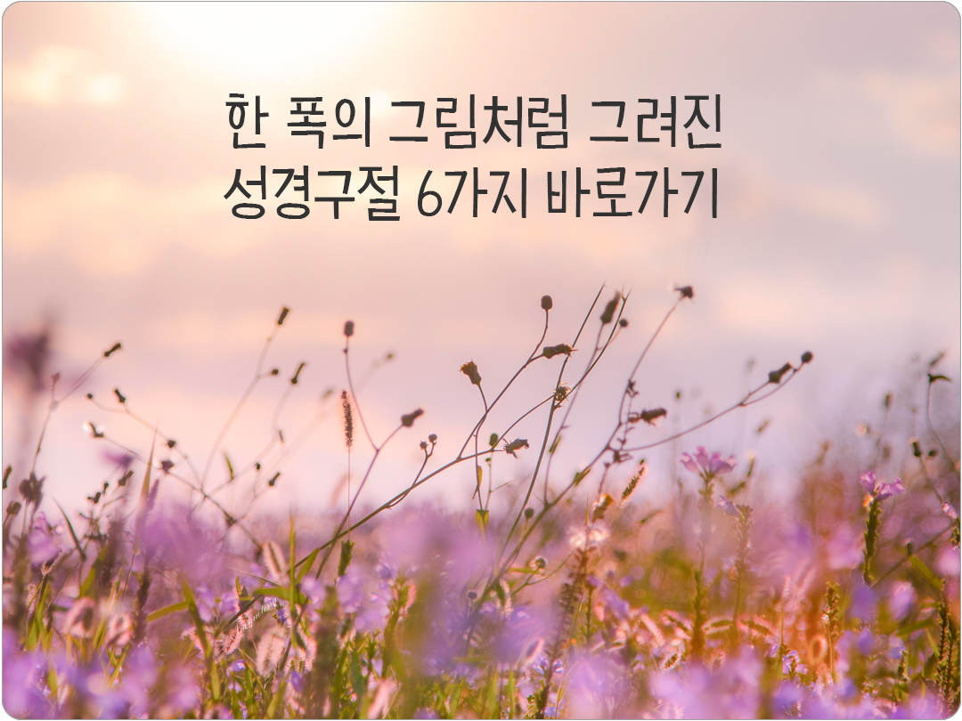 말씀 한 구절이 하루를 새롭게 하고 마음을 위로해주며, 때로는 예상치 못한 기적을 이끌어냅니다. 오늘을 위해 한 폭의 그림처럼 그려진 6가지 성경구절 지금 바로 만나보세요!