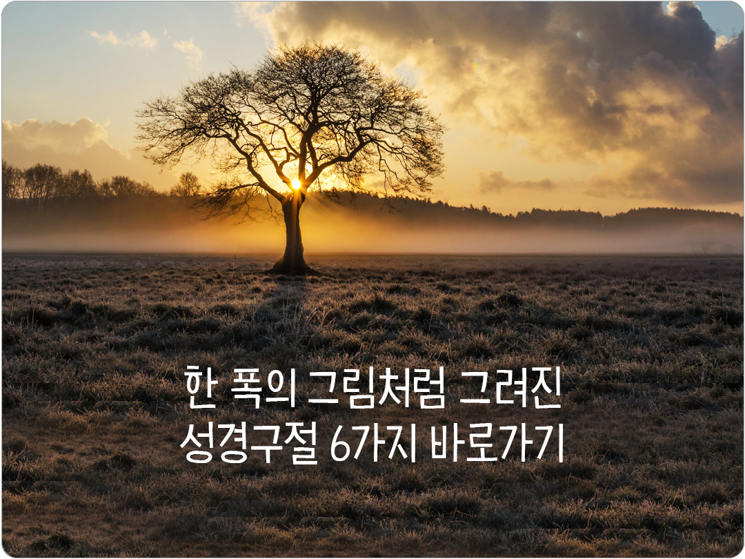 말씀 한 구절이 하루를 새롭게 하고 마음을 위로해주며, 때로는 예상치 못한 기적을 이끌어냅니다. 오늘을 위해 한 폭의 그림처럼 그려진 6가지 성경구절 지금 바로 만나보세요!