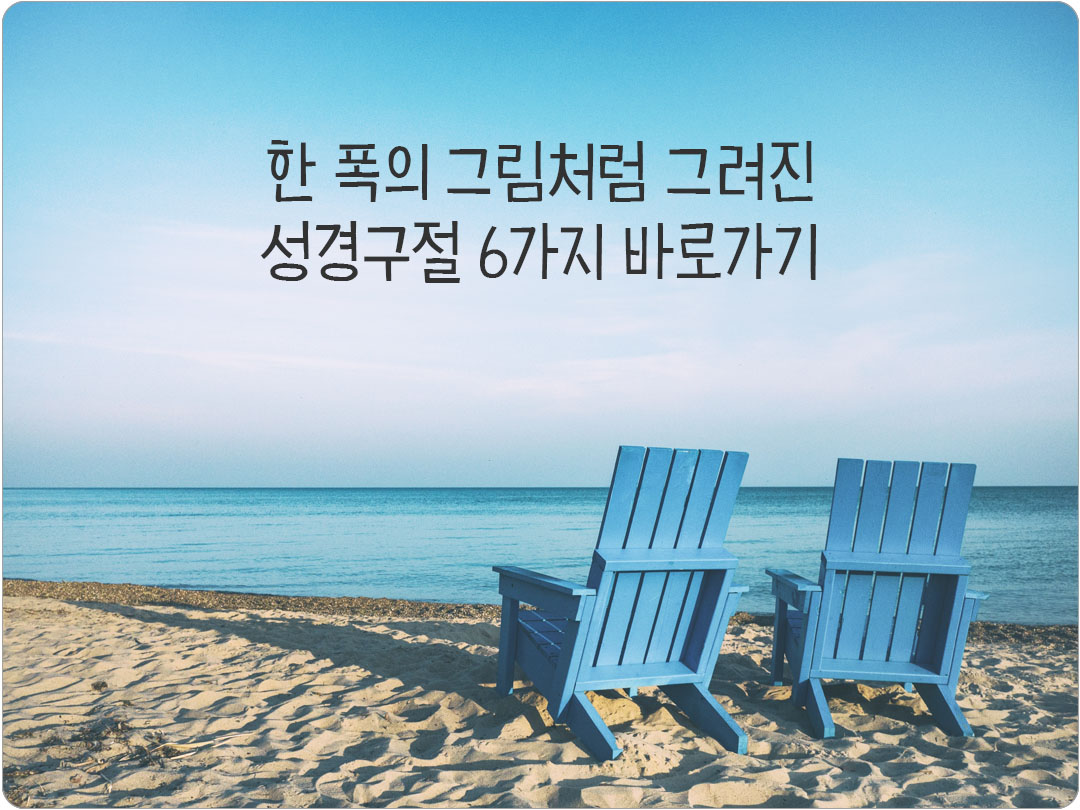 말씀 한 구절은 하루를 새롭게 하고 지친 마음에 조용한 위로를 건네며, 때로는 예상하지 못한 깨달음과 용기를 선물합니다. 오늘을 위해 한 폭의 그림처럼 그려진 6가지 성경구절을 통해 지금 이 순간, 삶에 꼭 필요한 말씀을 만나보세요.